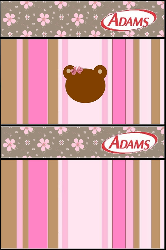 Rótulo Chicletes Adams Ursinha de Vestido Marrom e Rosa: