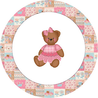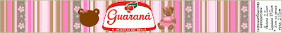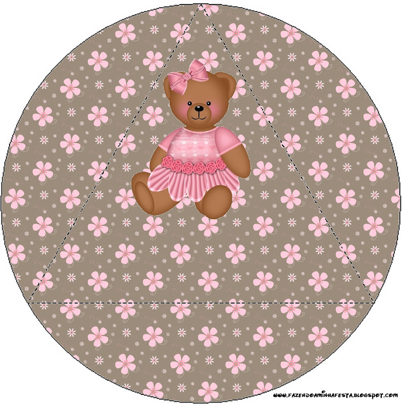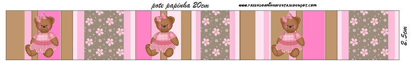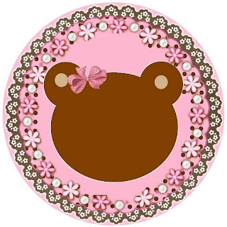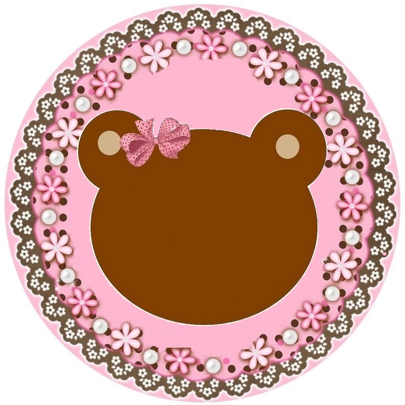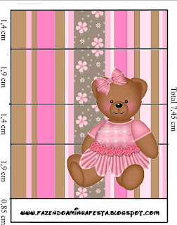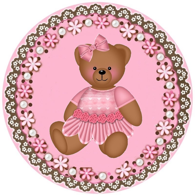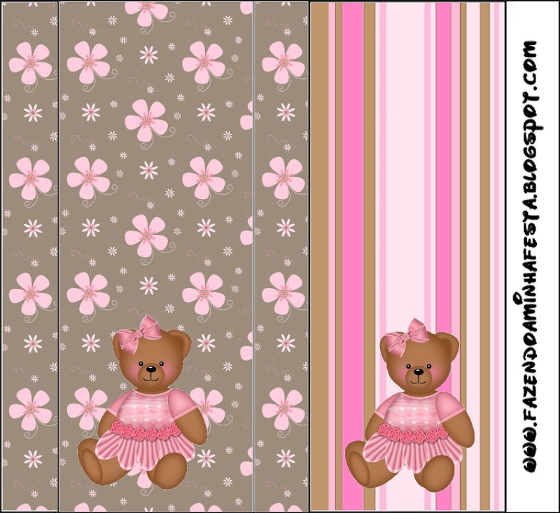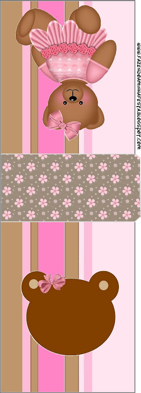 Rótulos Para: Latinha, Gelatina, Tampinha, Adesivos e Toppers Cupcakes Ursinha de Vestido Marrom e Rosa: