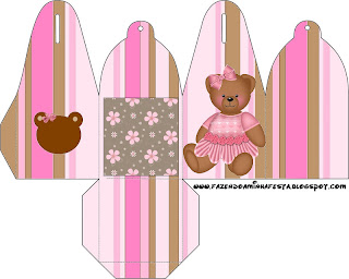 Caixa Fatia Ursinha de Vestido Marrom e Rosa: