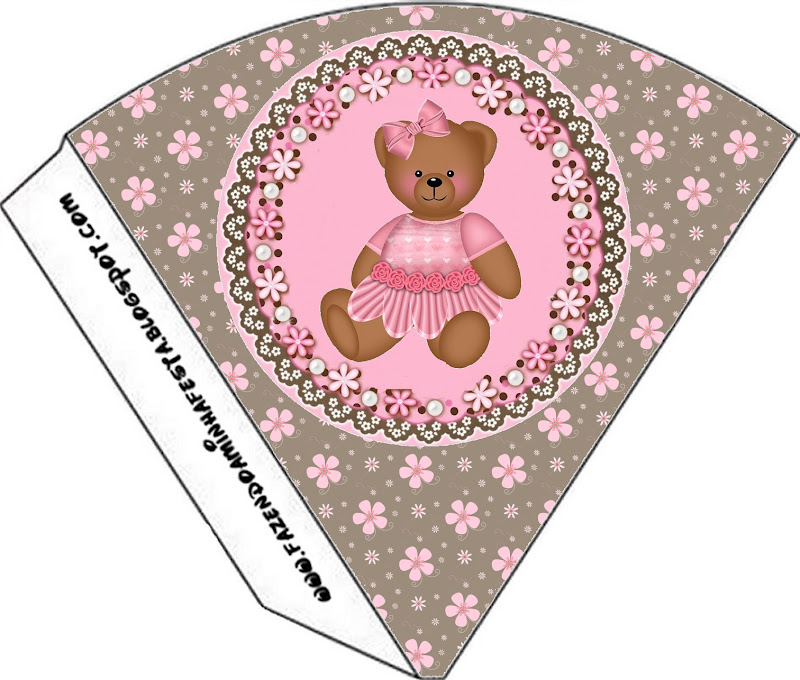 Cone Fechado Ursinha de Vestido Marrom e Rosa: