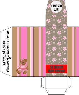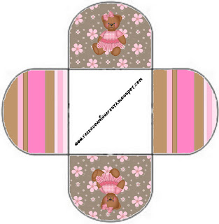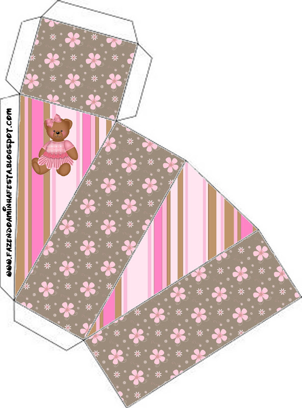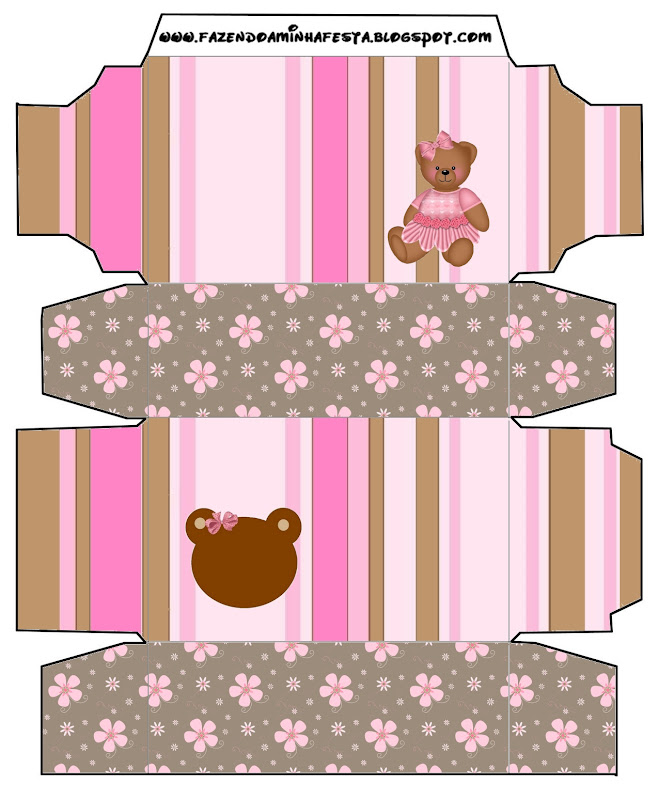 Convite Caixa Tampa Ursinha de Vestido Marrom e Rosa: