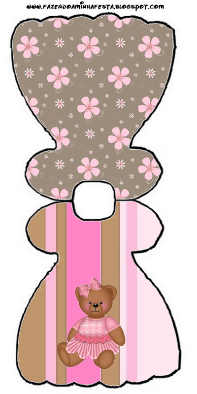 Rótulo Mini M&M Mini Confeti Ursinha de Vestido Marrom e Rosa: