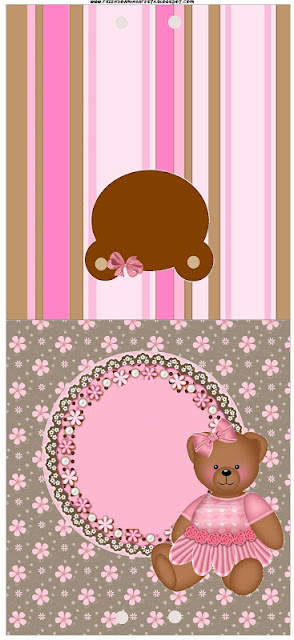 Convite Pirulito qualquer tamanho Ursinha de Vestido Marrom e Rosa: