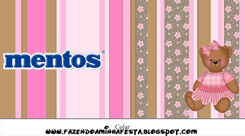 Rótulo Mentos Ursinha de Vestido Marrom e Rosa: