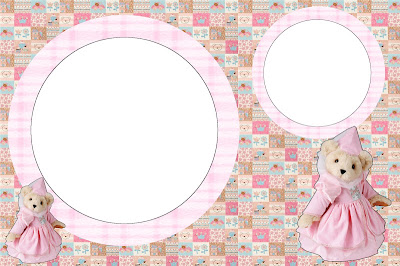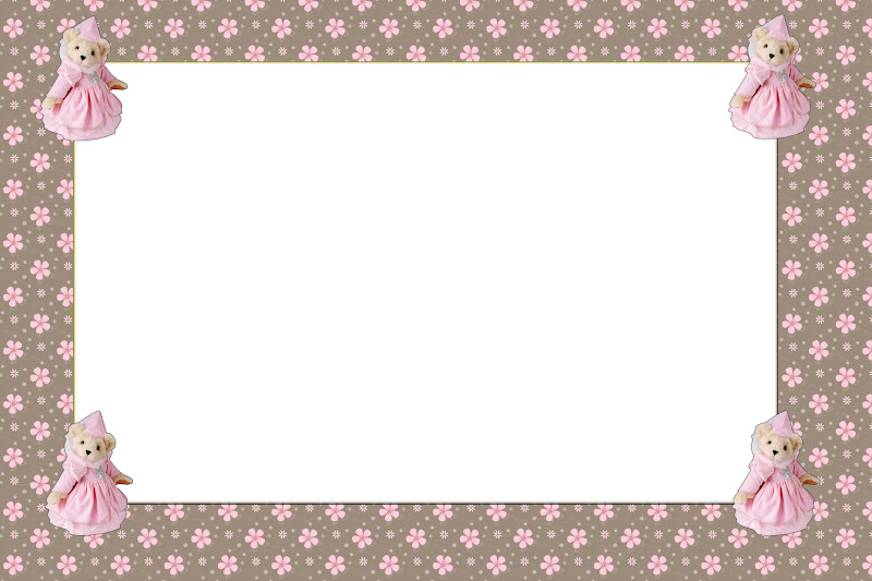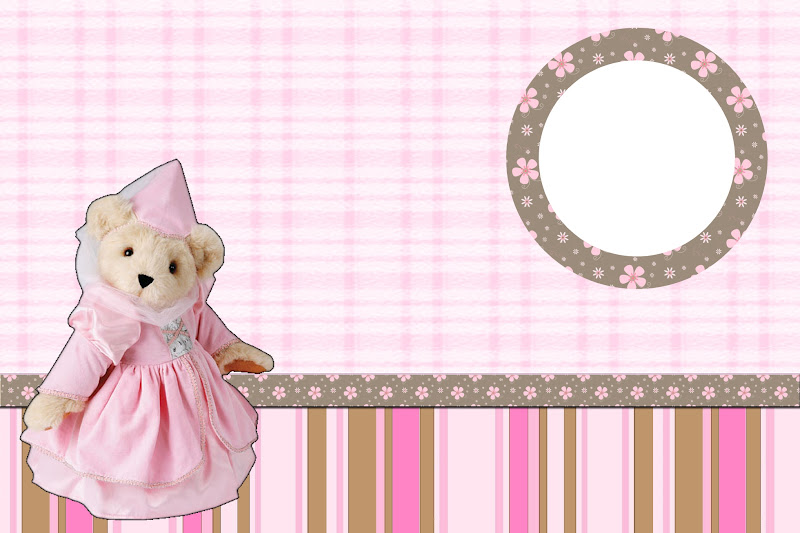 Moldura Convite Cartão Ursinha Princesa Marrom e Rosa: