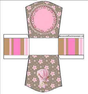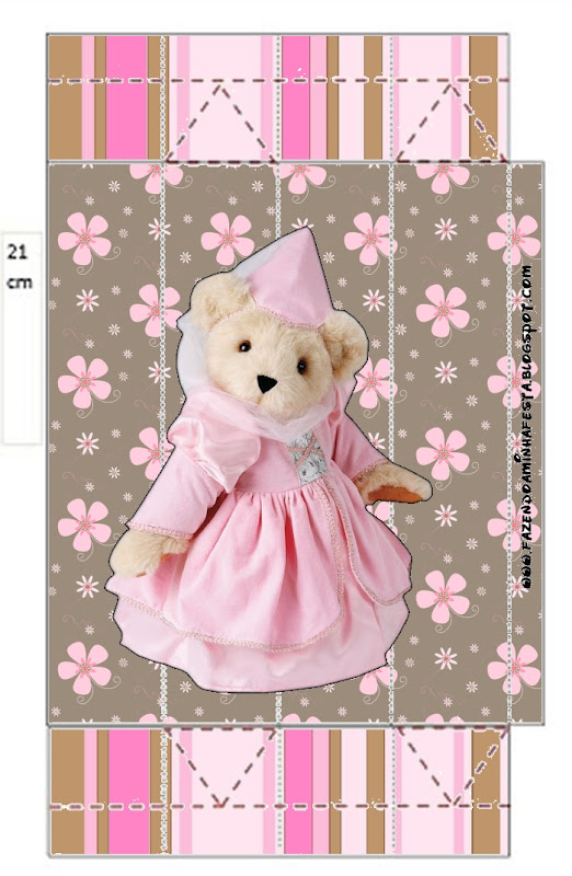 Caixa Fatia Ursinha Princesa Marrom e Rosa: