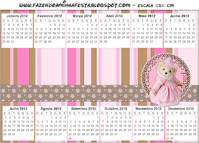 Convite Calendário Ursinha Princesa Marrom e Rosa: