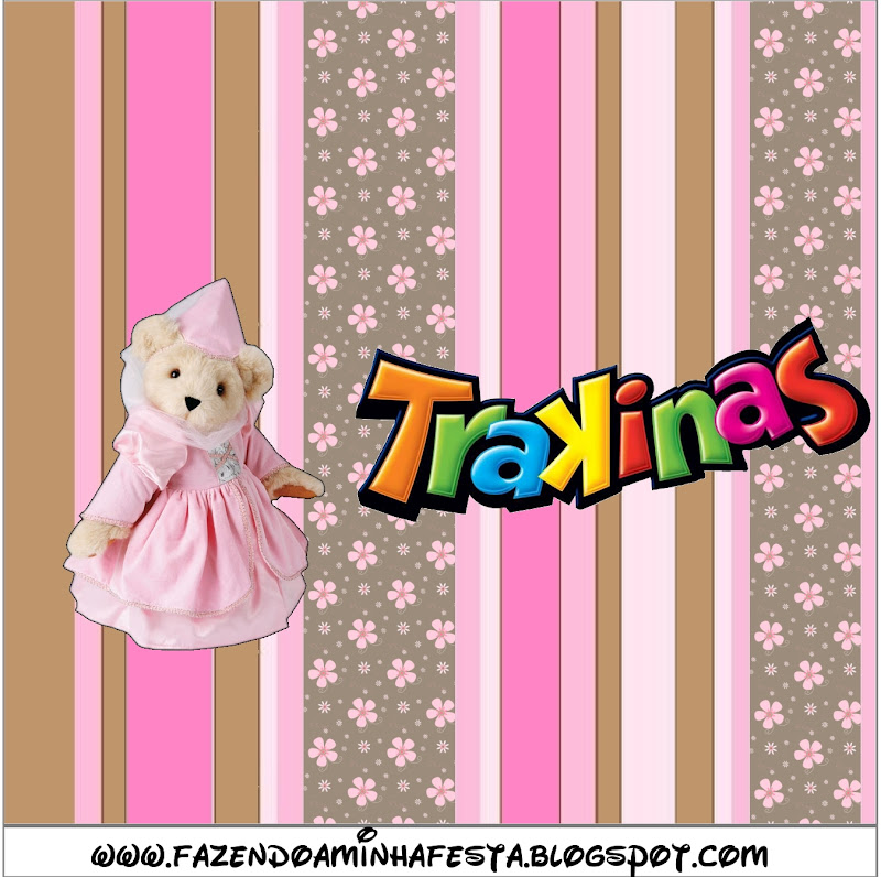 Rótulo Mini Trakinas Ursinha Princesa Marrom e Rosa:
