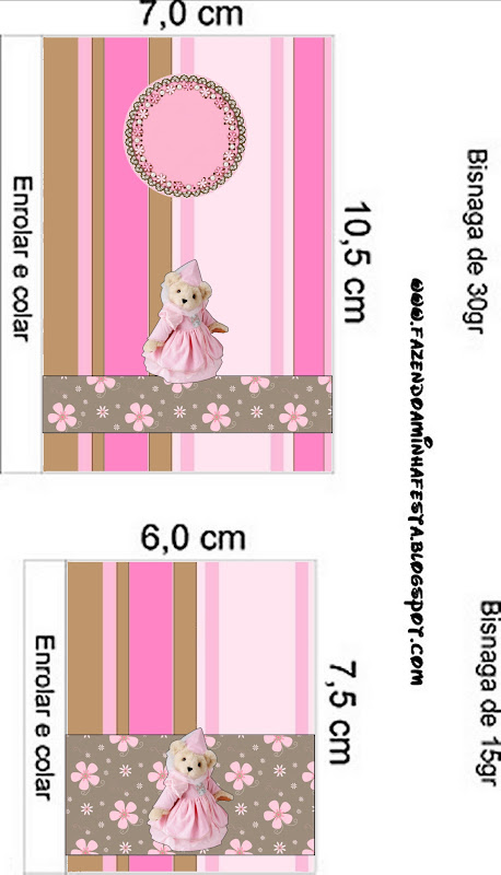 Rótulo Bis Ursinha Princesa Marrom e Rosa: