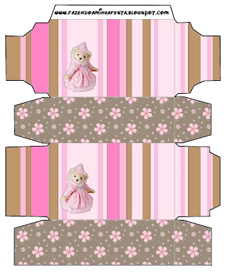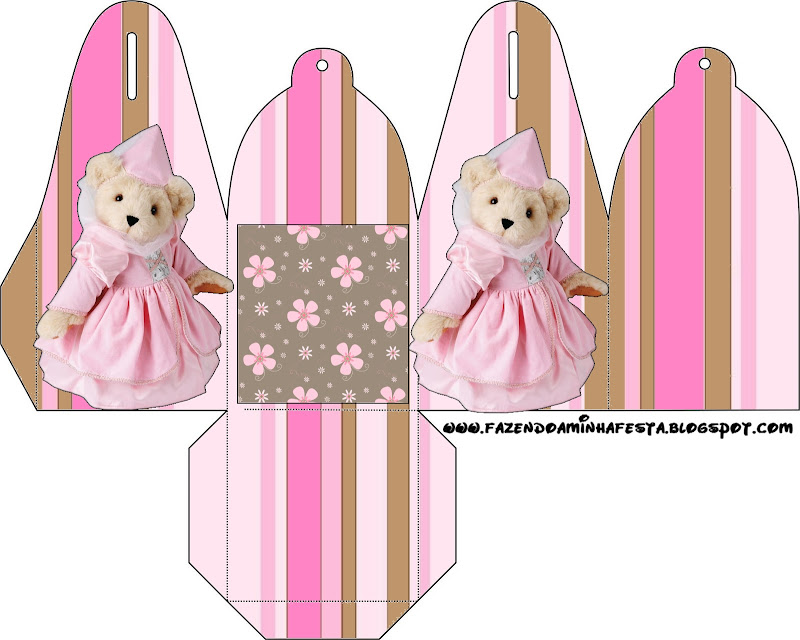 Caixa Convite Tampa Ursinha Princesa Marrom e Rosa: