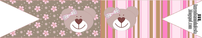 Bandeirinha e topper cupcake Ursinha Rosto em Marrom e Rosa: