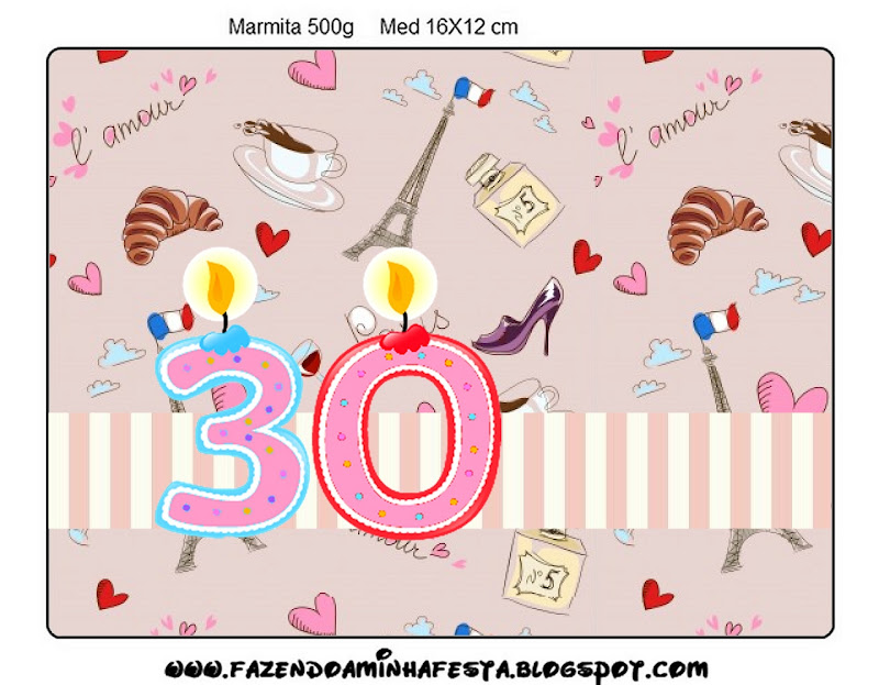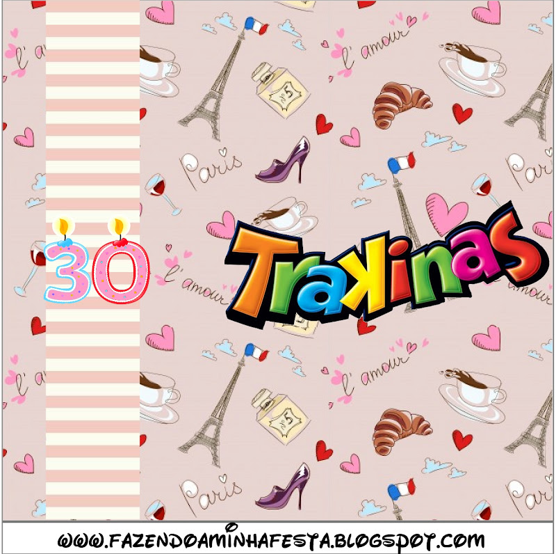 30 Anos Paris – Kit Completo com molduras para convites, rótulos para guloseimas, lembrancinhas e imagens!