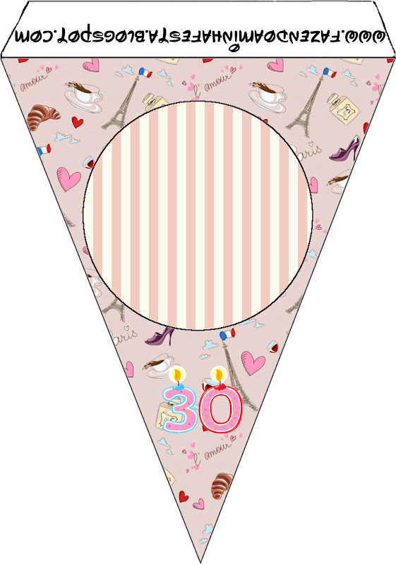 Bandeirinha Sanduiche e Cupcakes Trinta Anos Paris: