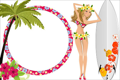 Moldura Convite e Cartão Festa Havaiana na Piscina: