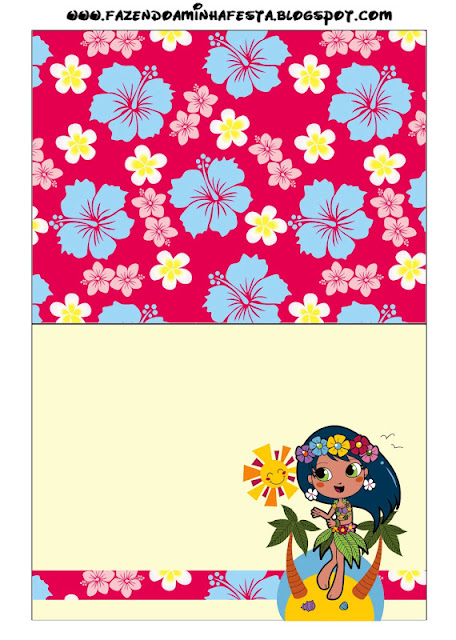 Convite Moldura e Cartão Festa Menina Havaiana: