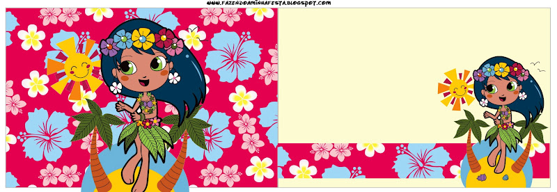 Convite Moldura e Cartão Festa Menina Havaiana: