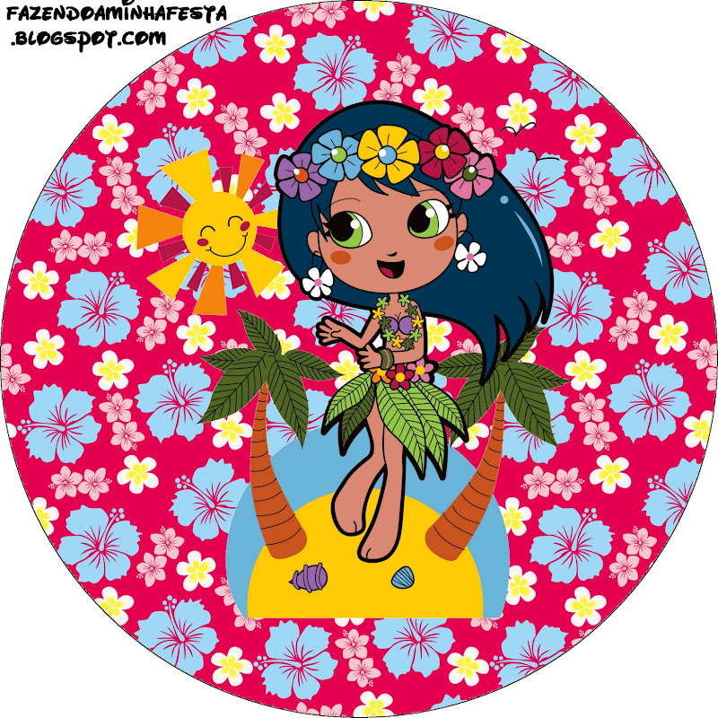 Festa Menina Havaiana – Kit Completo com molduras para convites, rótulos para guloseimas, lembrancinhas e imagens!