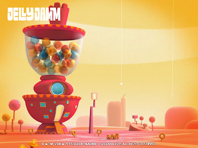 Imagens do Jally Jamm e personagens Rita, Nina, Goomo e Bello:
