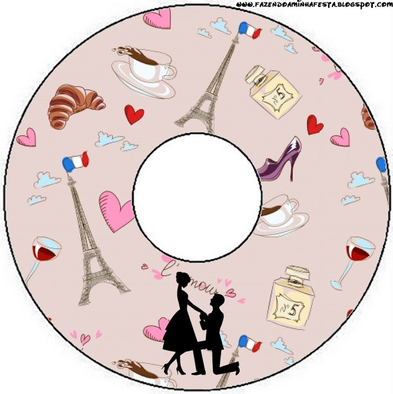Rótulos para: Latinha, Gelatina, Tampinhas, Marmita Redonda, Adesivos e Toppers para Cupcakes Noivado em Paris: