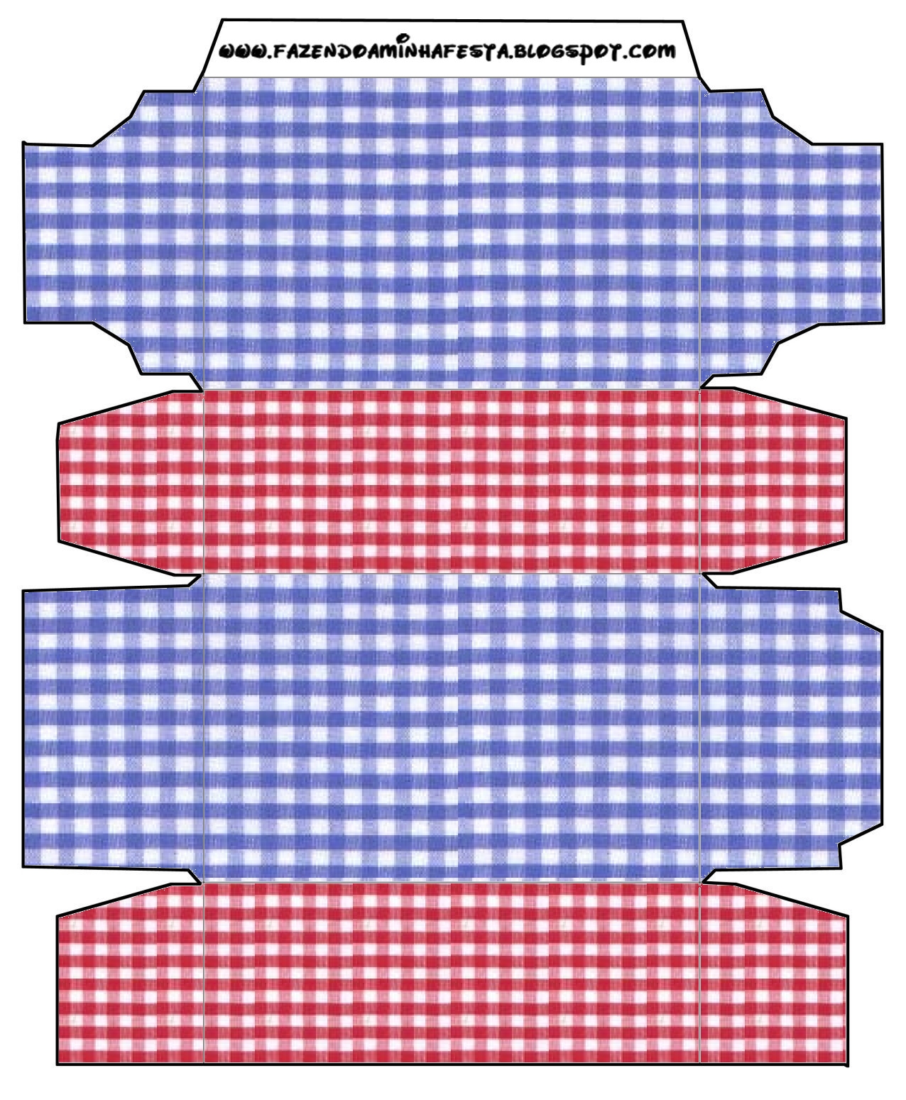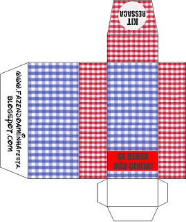 Convite Caixa Tampa Xadrez Vermelho e Azul: