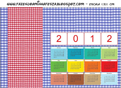 Convite Calendário 2012 Xadrez Vermelho e Azul:
