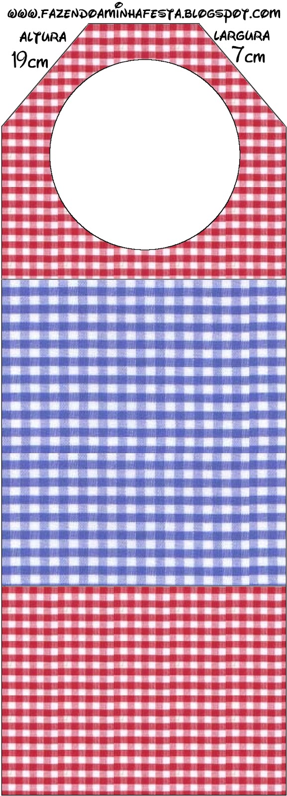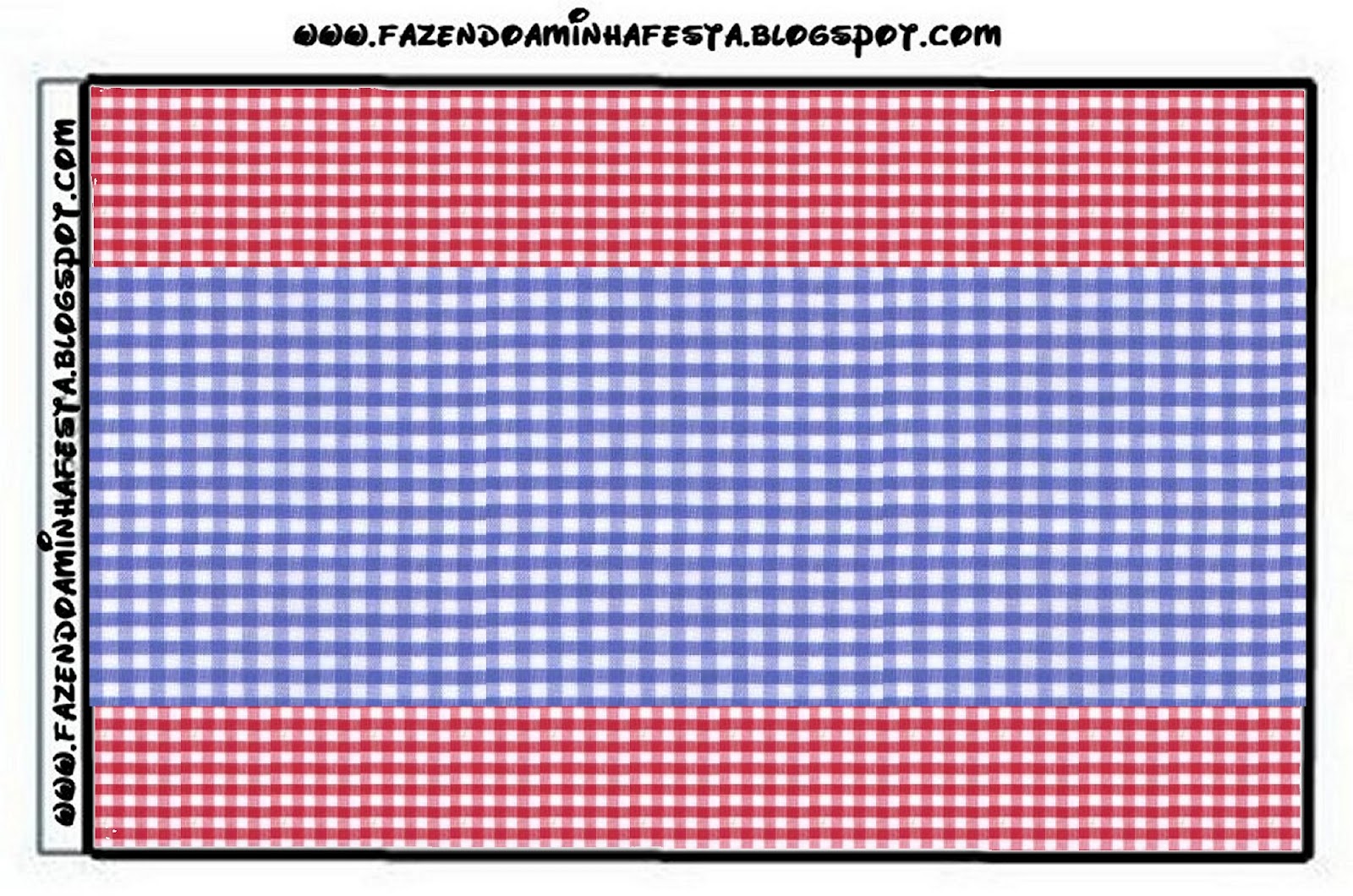 Rótulo Garrafas Xadrez Vermelho e Azul: