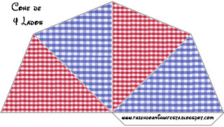 Cone Guloseimas 4 lados Xadrez Vermelho e Azul: