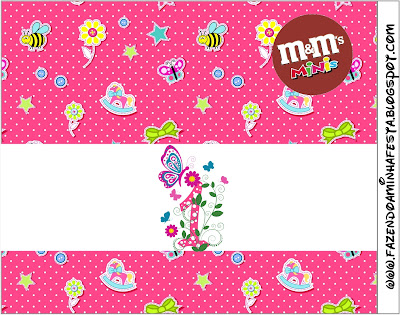 Rótulo Mini M&M Festa 1 Ano Menina:
