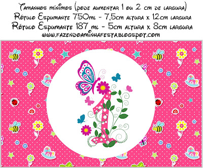 Rótulos Garrafas Festa 1 Ano Menina: