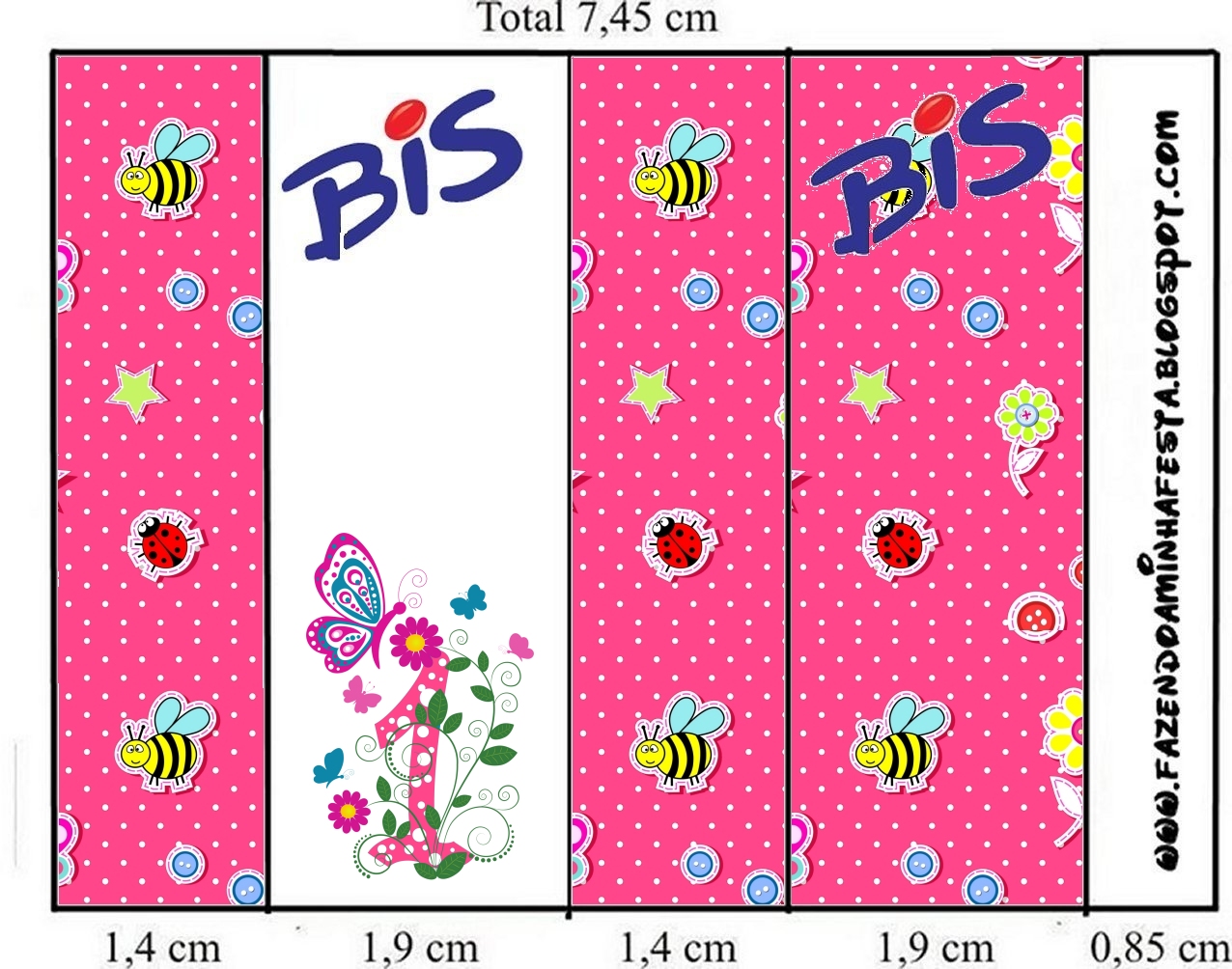 Rótulo Bis com Logo Lacta Festa 1 Ano Menina: