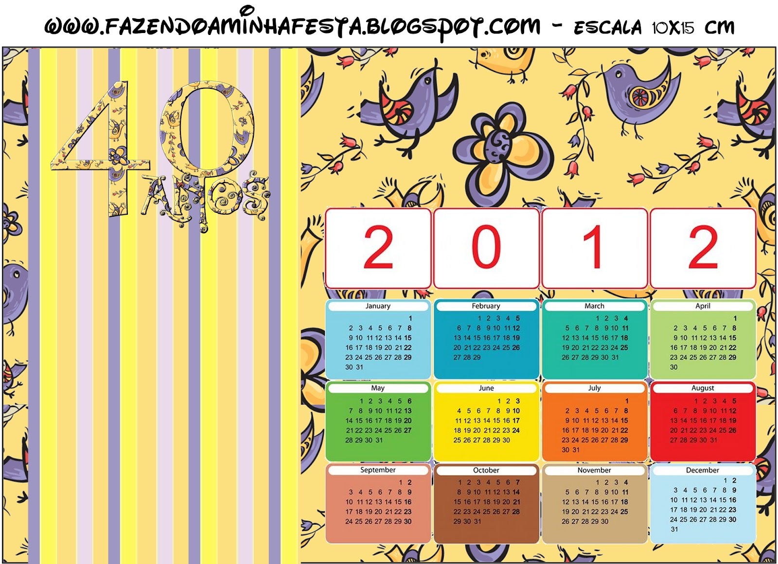 Convite Calendário 2012 Festa 40 anos Feminino: