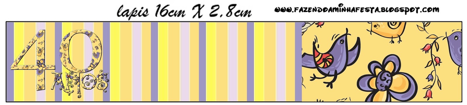Rótulo Lápis Festa 40 anos Feminino: