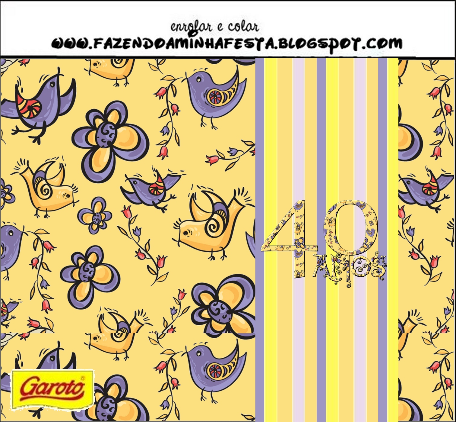 Rótulo Pastilha Garoto Festa 40 anos Feminino: