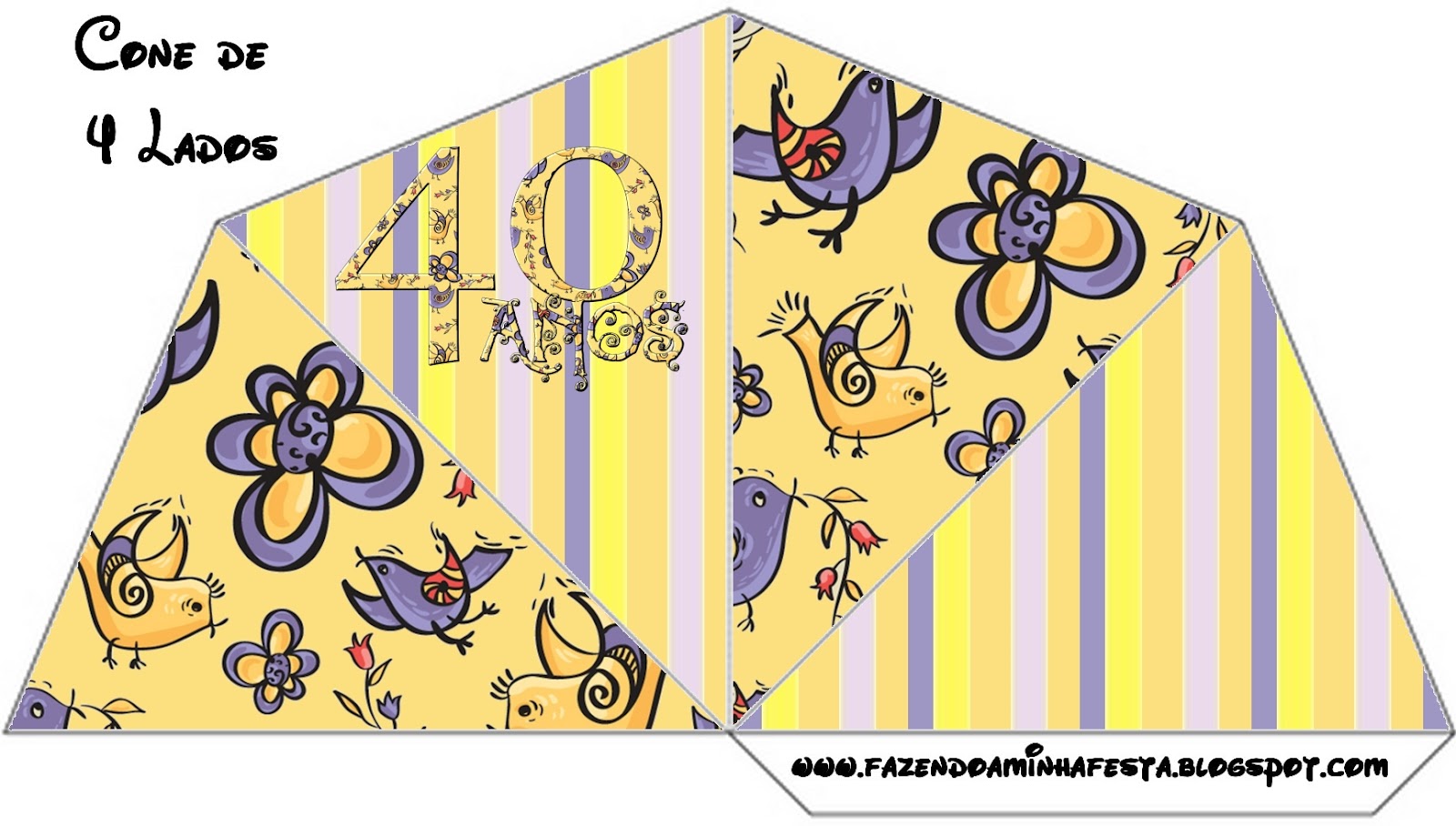 Cone Guloseimas 4 lados Festa 40 anos Feminino: