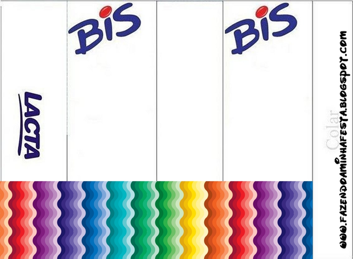 Rótulo Bis com Logo Lacta Festa Arco Íris Cores Fortes: