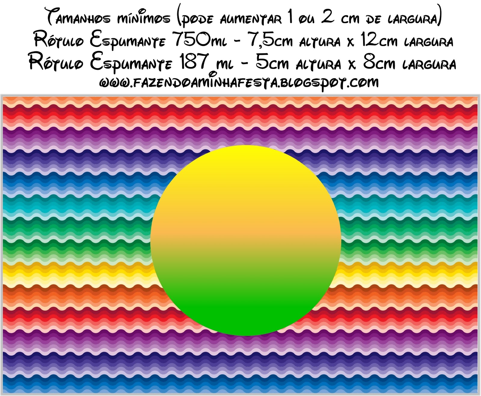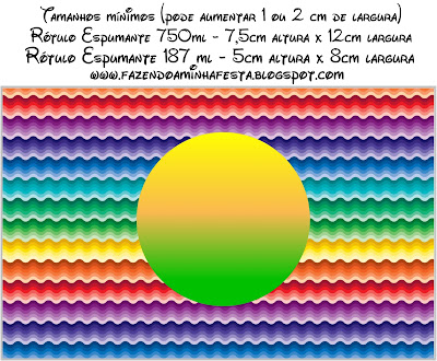 Rótulo Champagne,Espumante e Vinho Festa Arco Íris Cores Fortes: