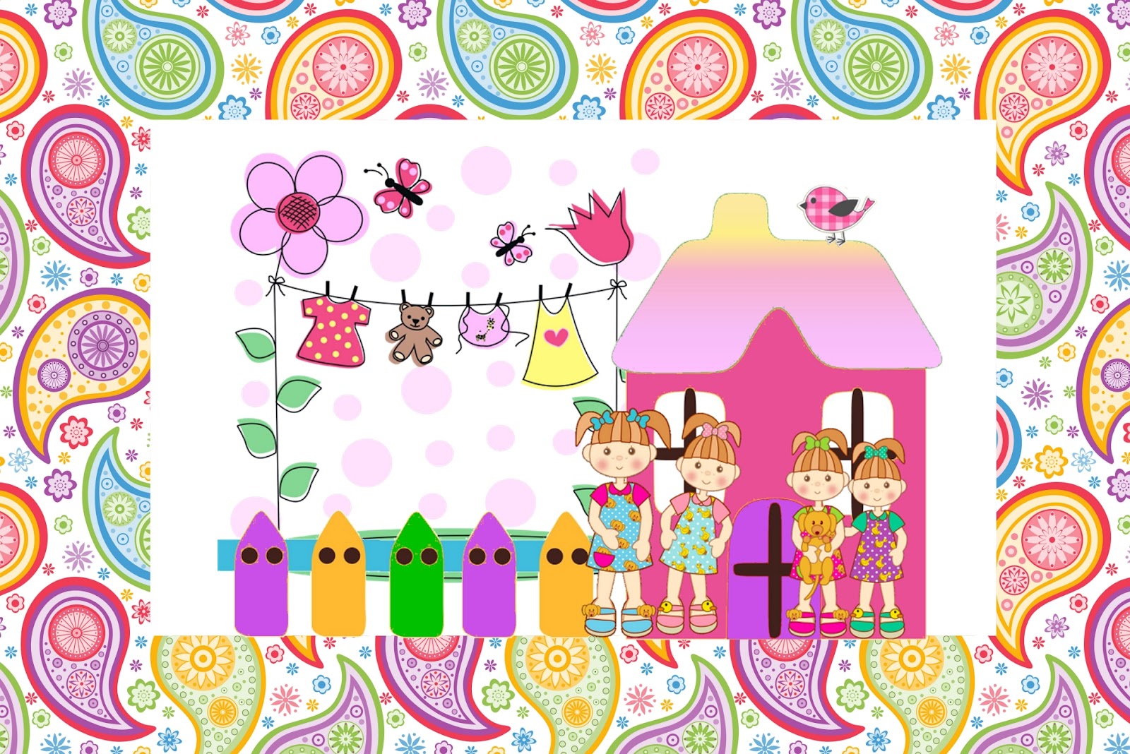 Moldura Convite e Cartão Casinha de Bonecas: