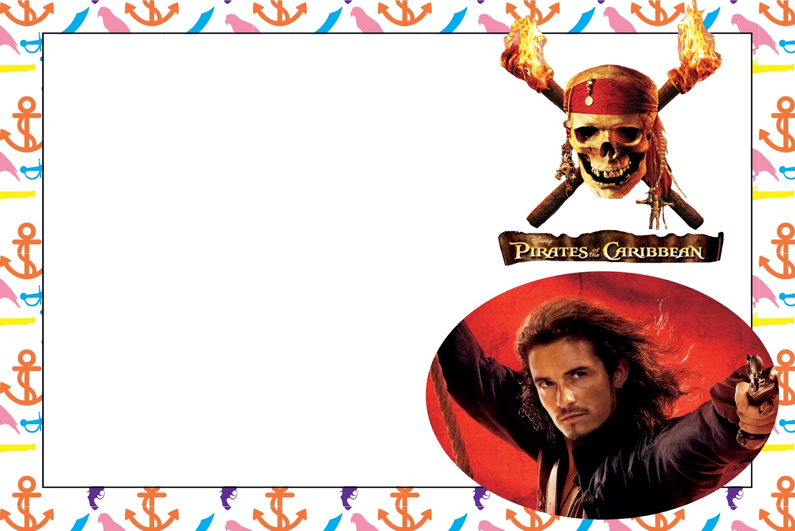 Moldura Convite e Cartão Piratas do Caribe: