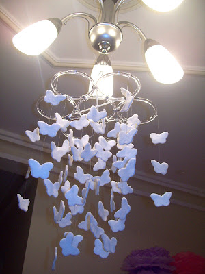 Nossa leitora fez desde o convite, decoração, roupas das bonecas fadas, cortinas, mobiles de borboletas e biscuit de fadas, arvore das fadas, prendas das mesas, arvore de balas,pirulitos de chocolates, trufas, bolo, cupckakes! Nossa que capricho ein!? Recebeu ajuda apenas para fazer as almofadas, bolsas e flores de tecidos que foram preparadas por sua mãe!