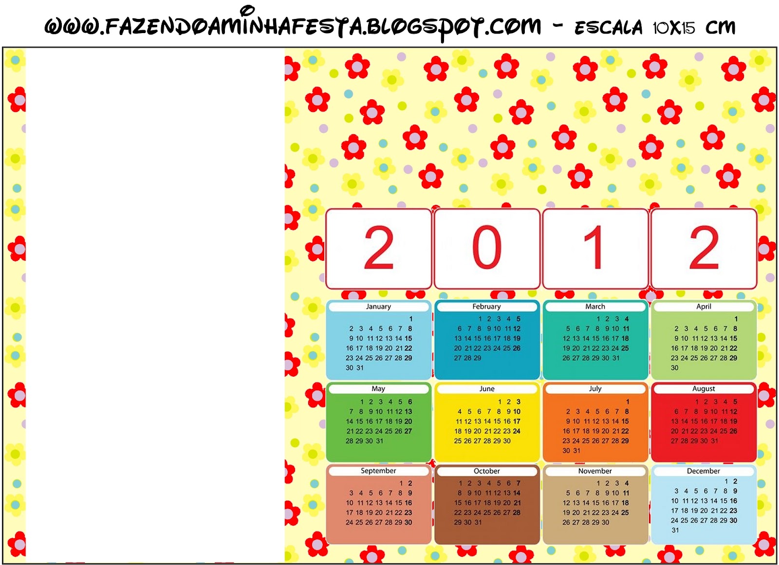 Convite Calendário 2012 Flores Vermelho e Amarelo: