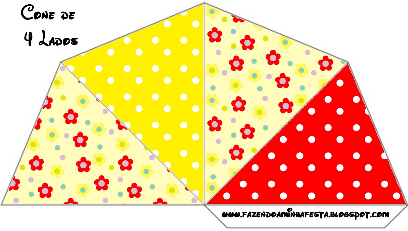 Cone Guloseimas 4 lados Flores Vermelho e Amarelo:
