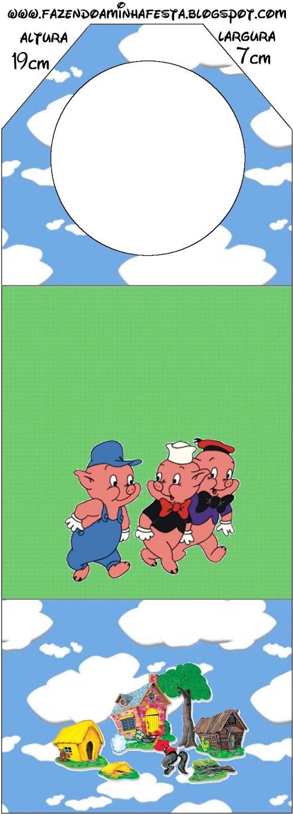 Convite Pirulito qualquer tamanho Os Três Porquinhos: