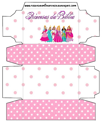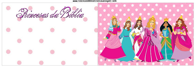 Convite Caixa Fundo Princesas da Bíblia Poá Rosa: