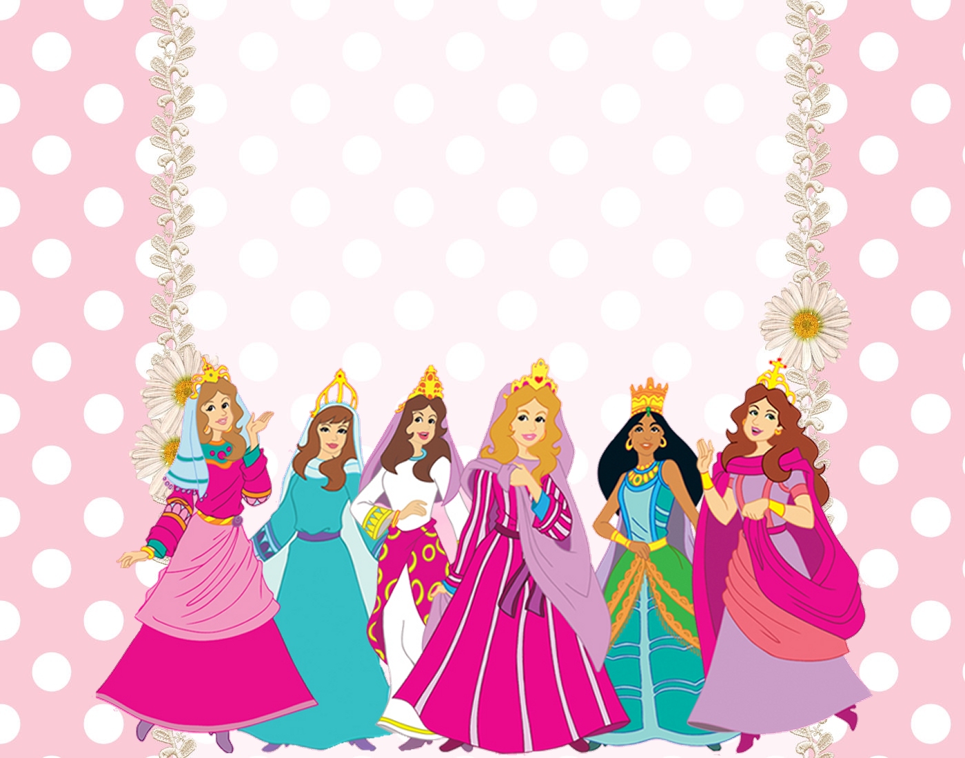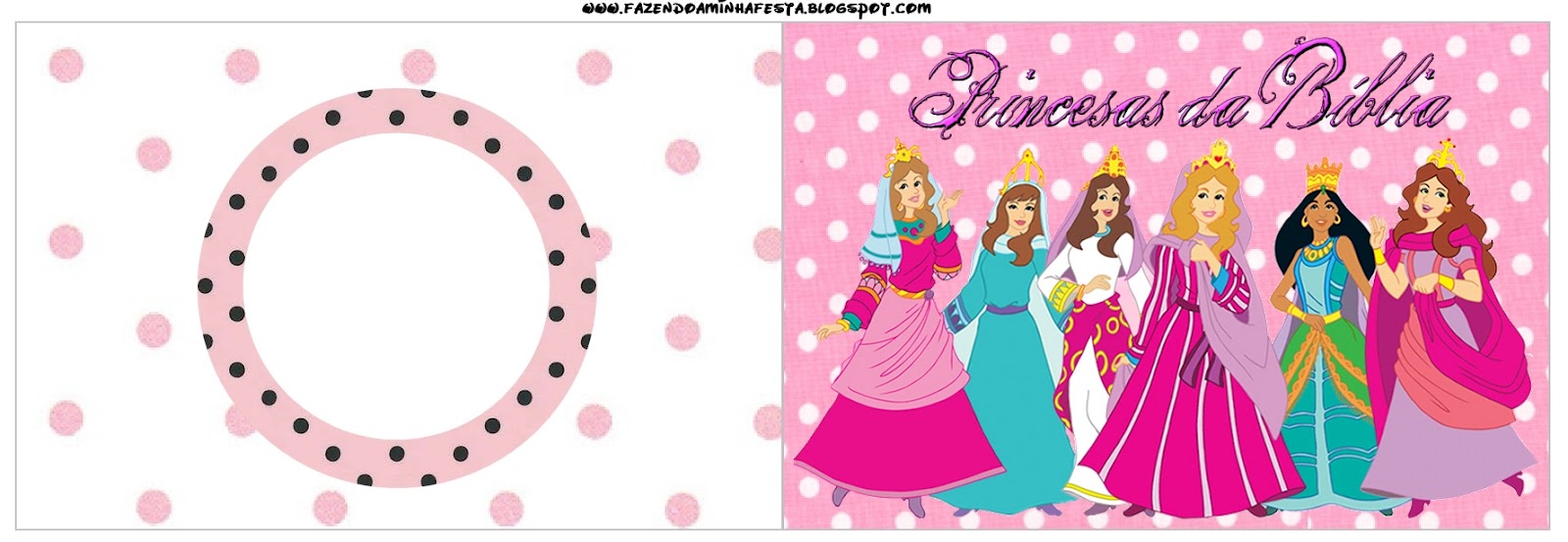Moldura Convite e Cartão Princesas da Bíblia Poá Rosa: