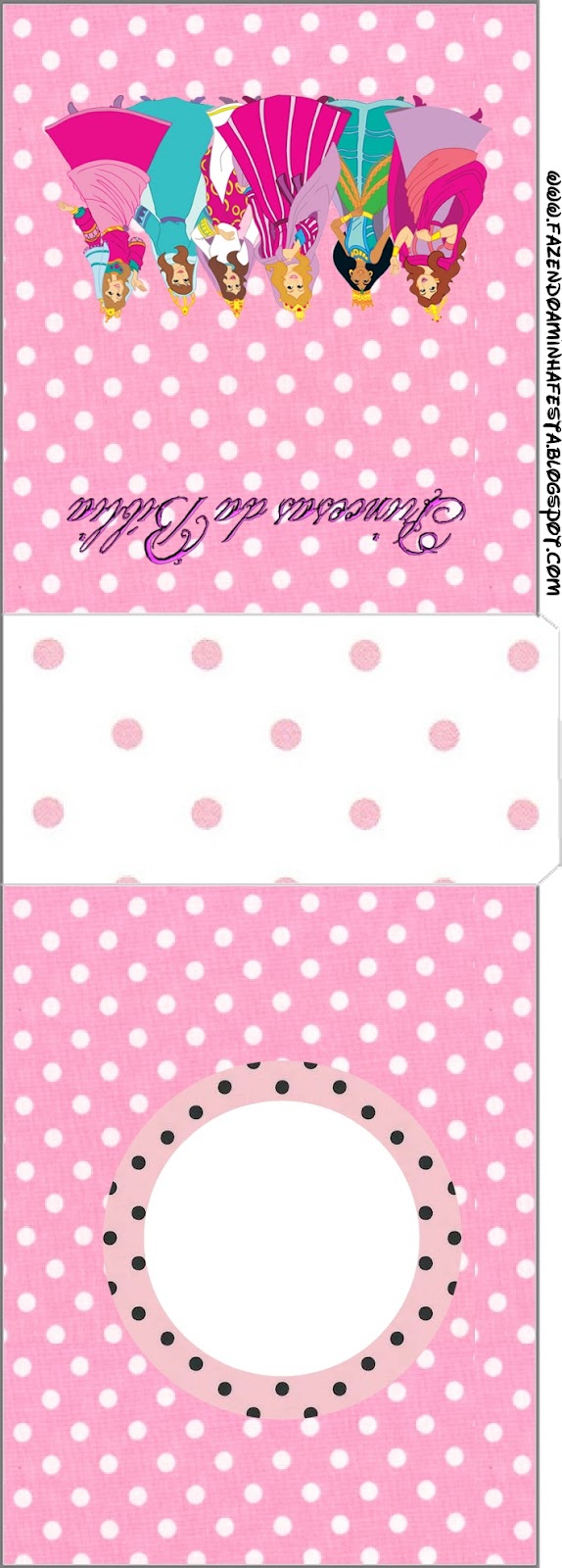Convite Pirulito qualquer tamanho Princesas da Bíblia Poá Rosa: