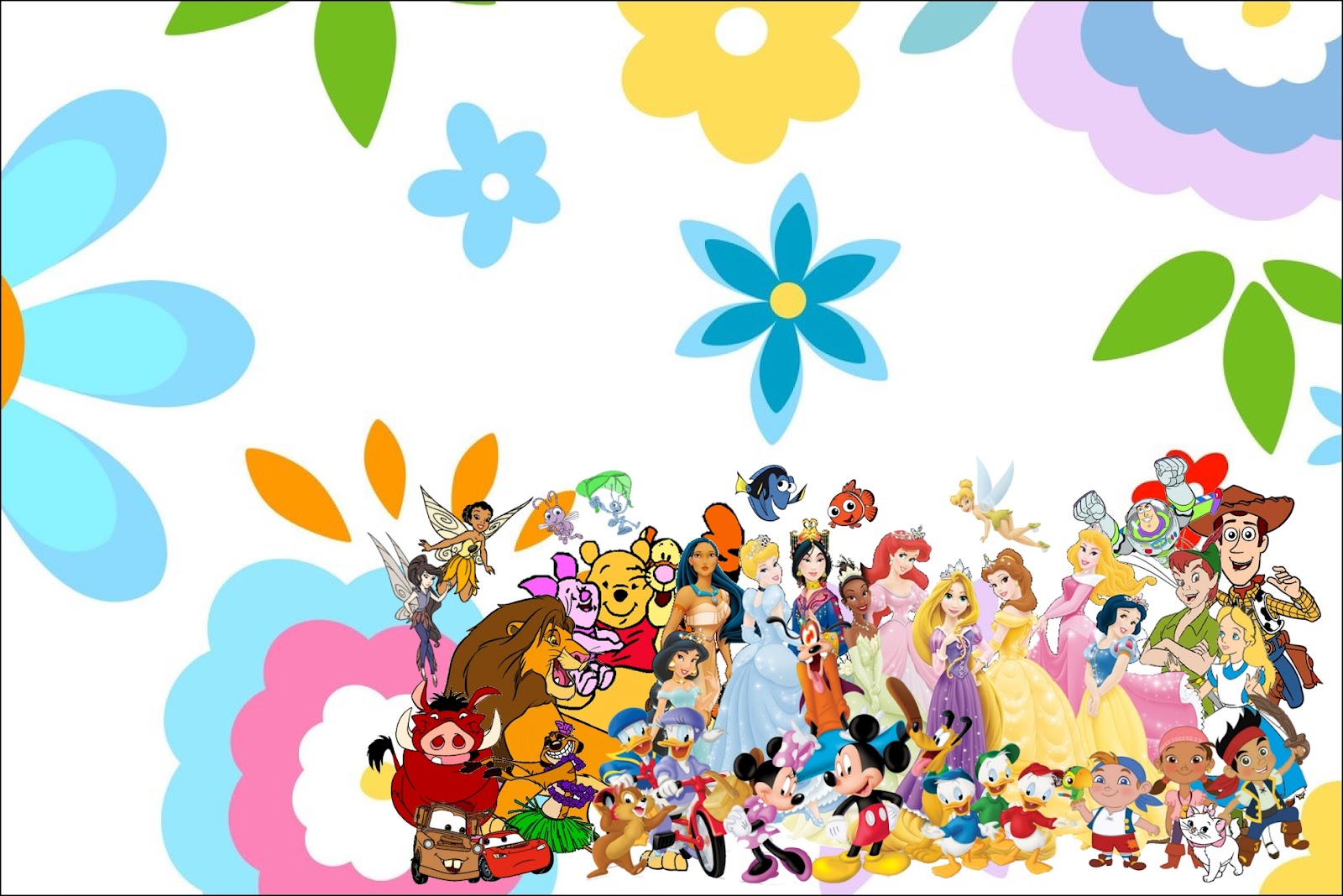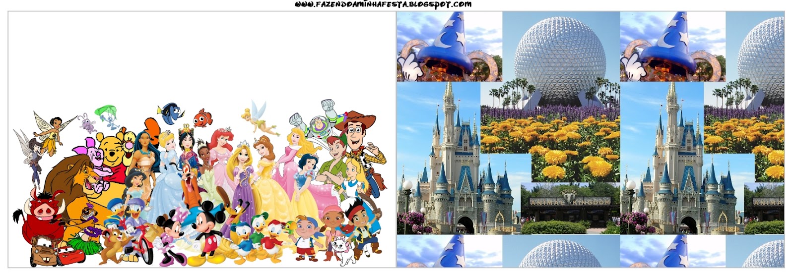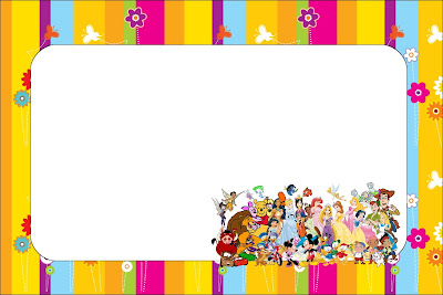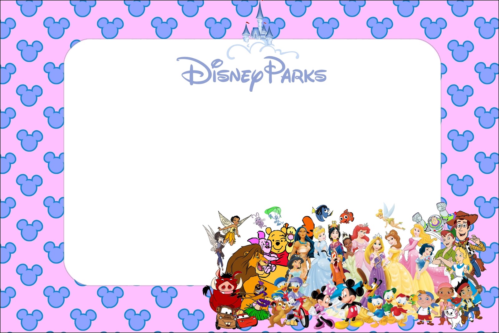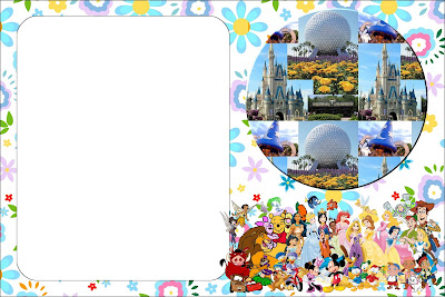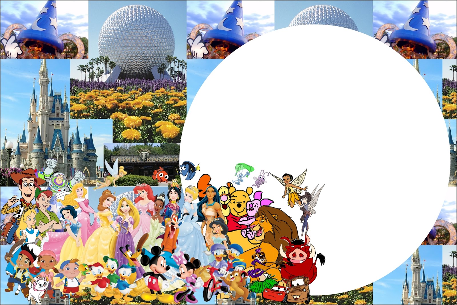 Moldura Convite e Cartão Walt Disney World com Personagens: