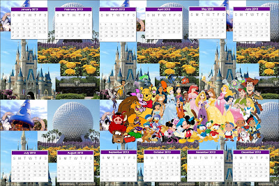 Convite Calendário 2012 Walt Disney World com Personagens: