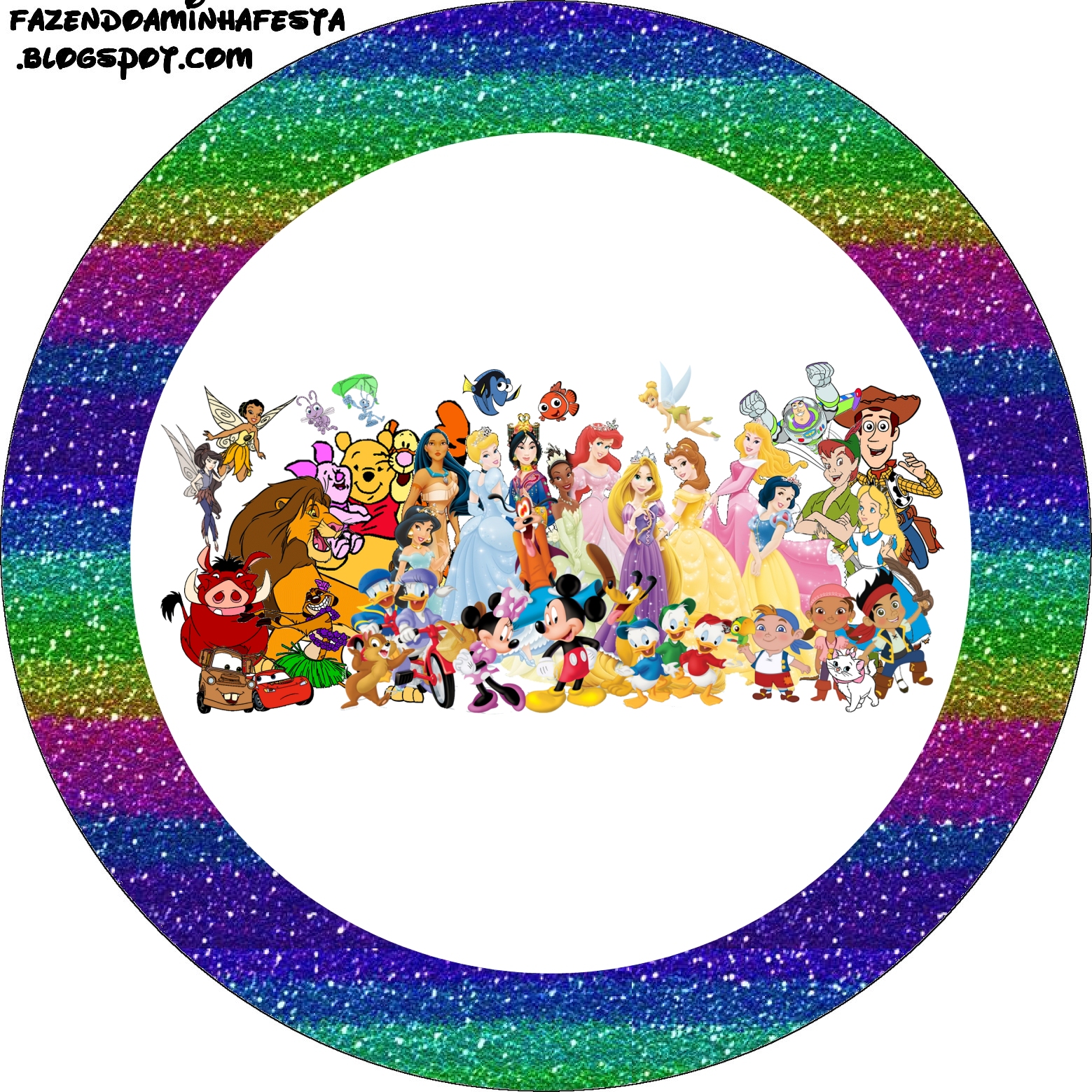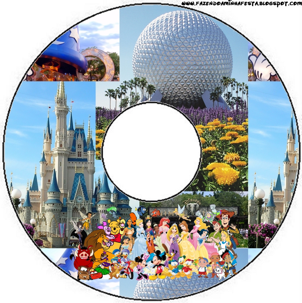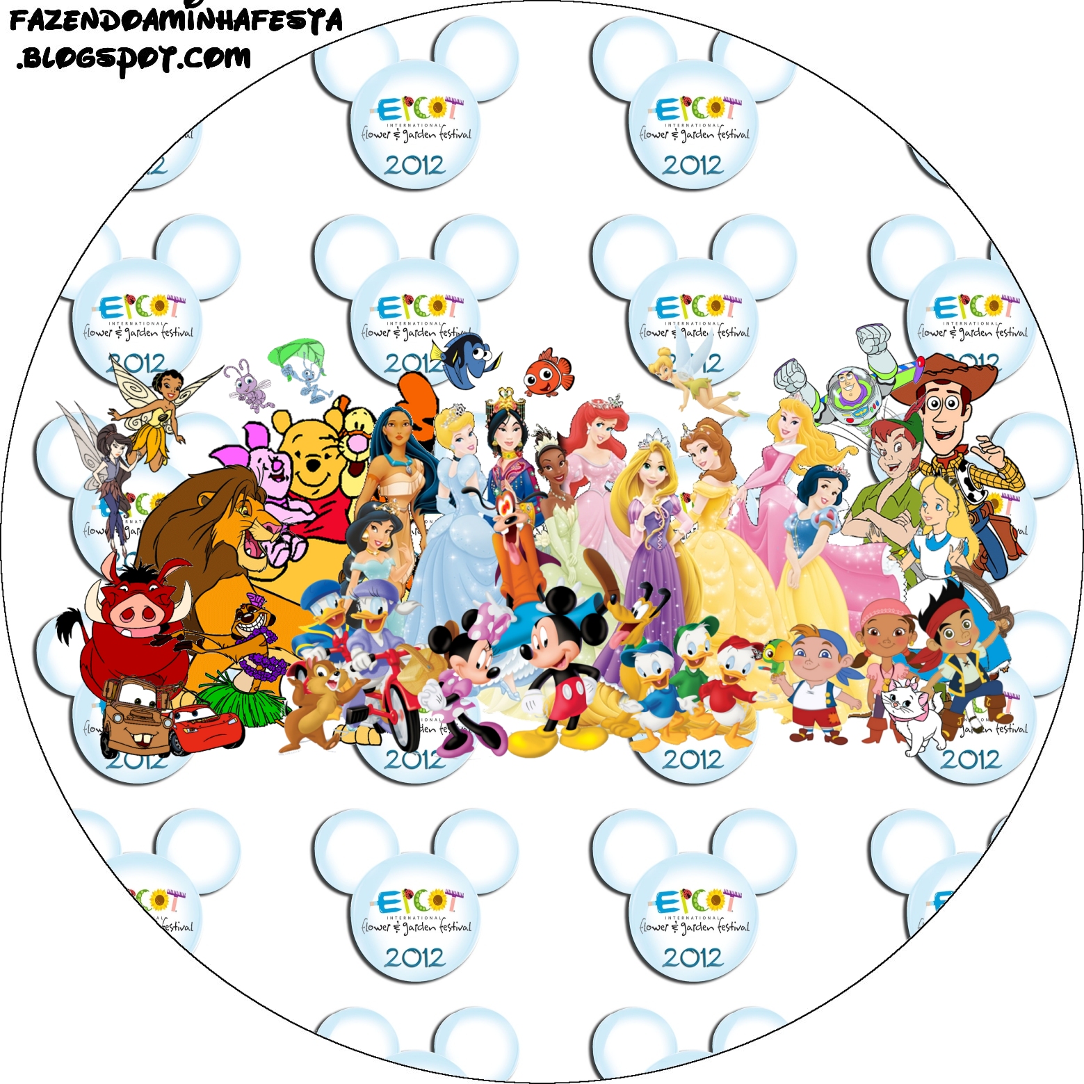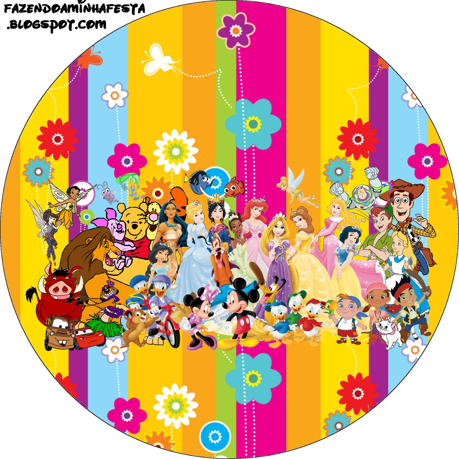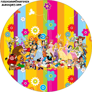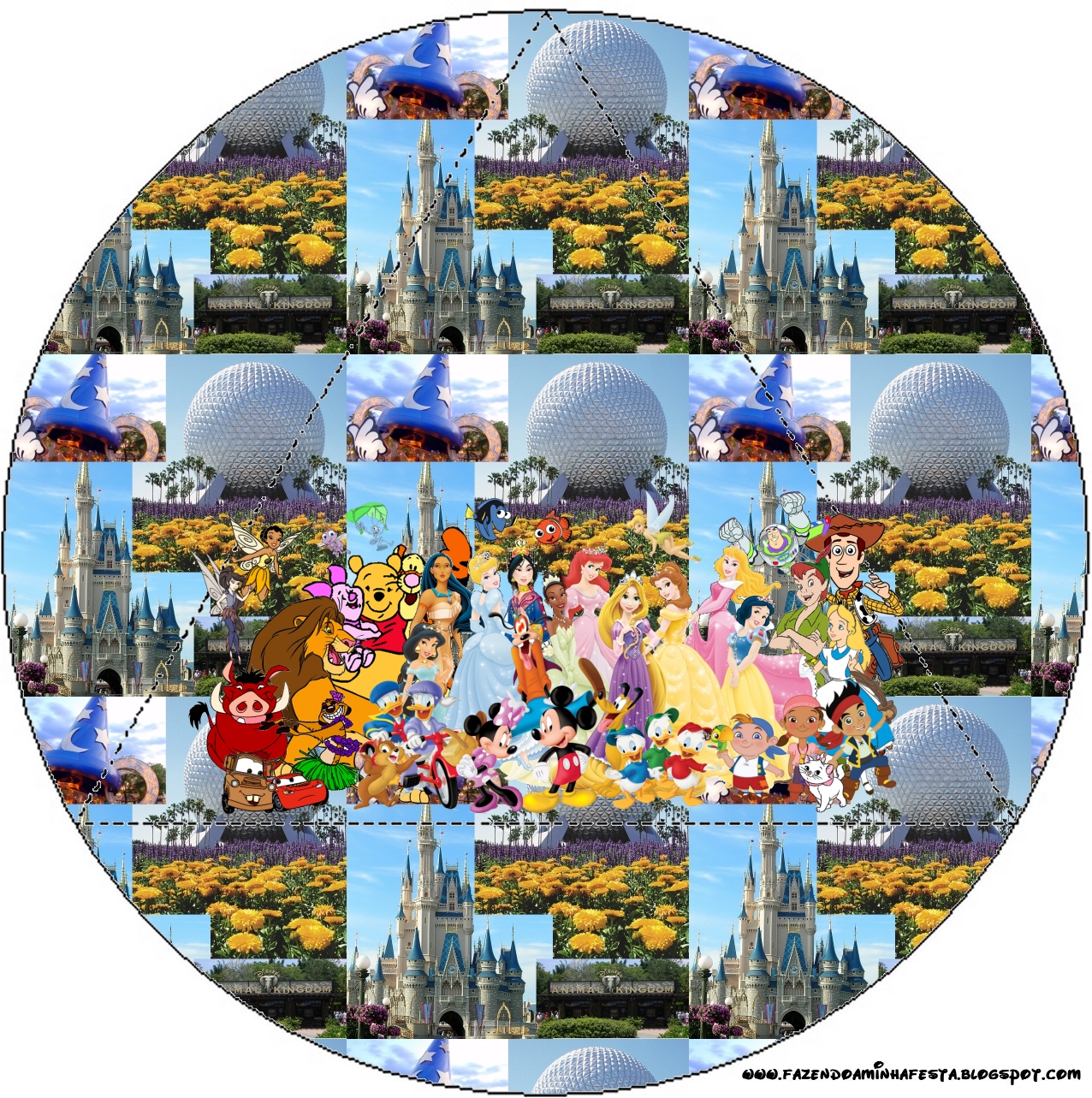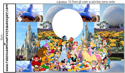 Rótulos para: Latinha,Gelatina,Tampinhas,Adesivos,Marmita Redonda e Toppers Cupcakes Walt Disney World com Personagens: