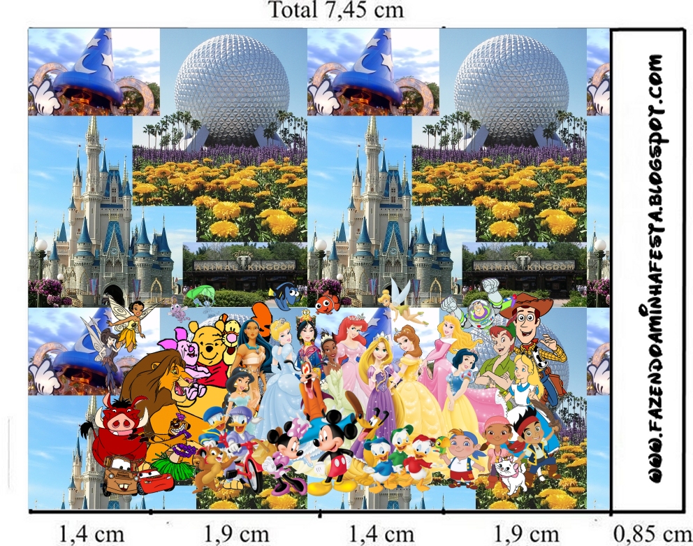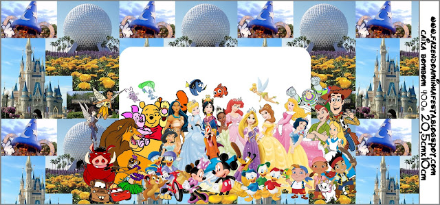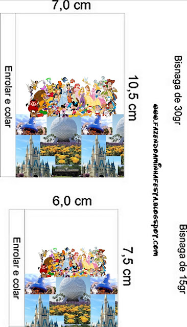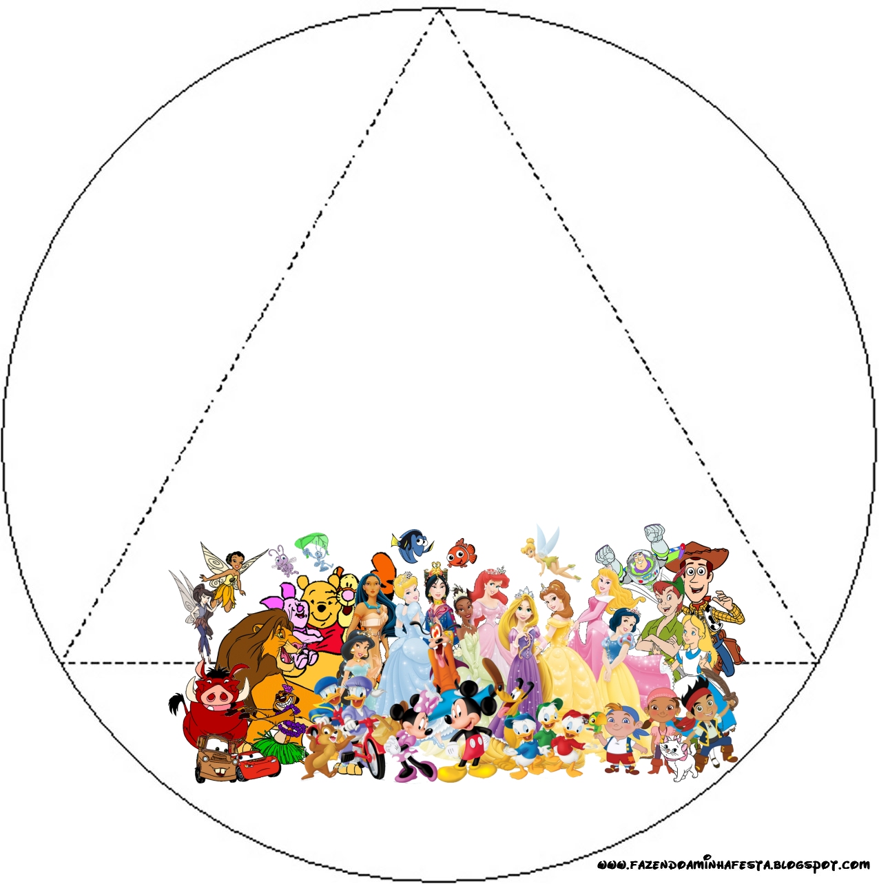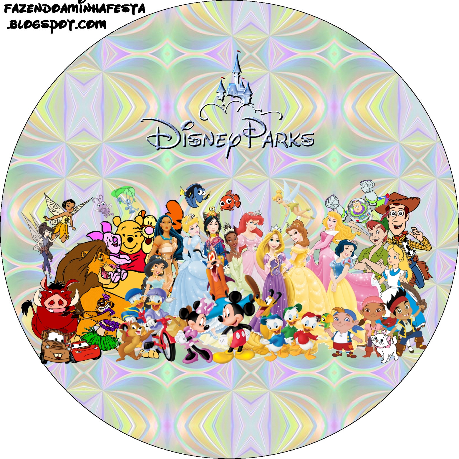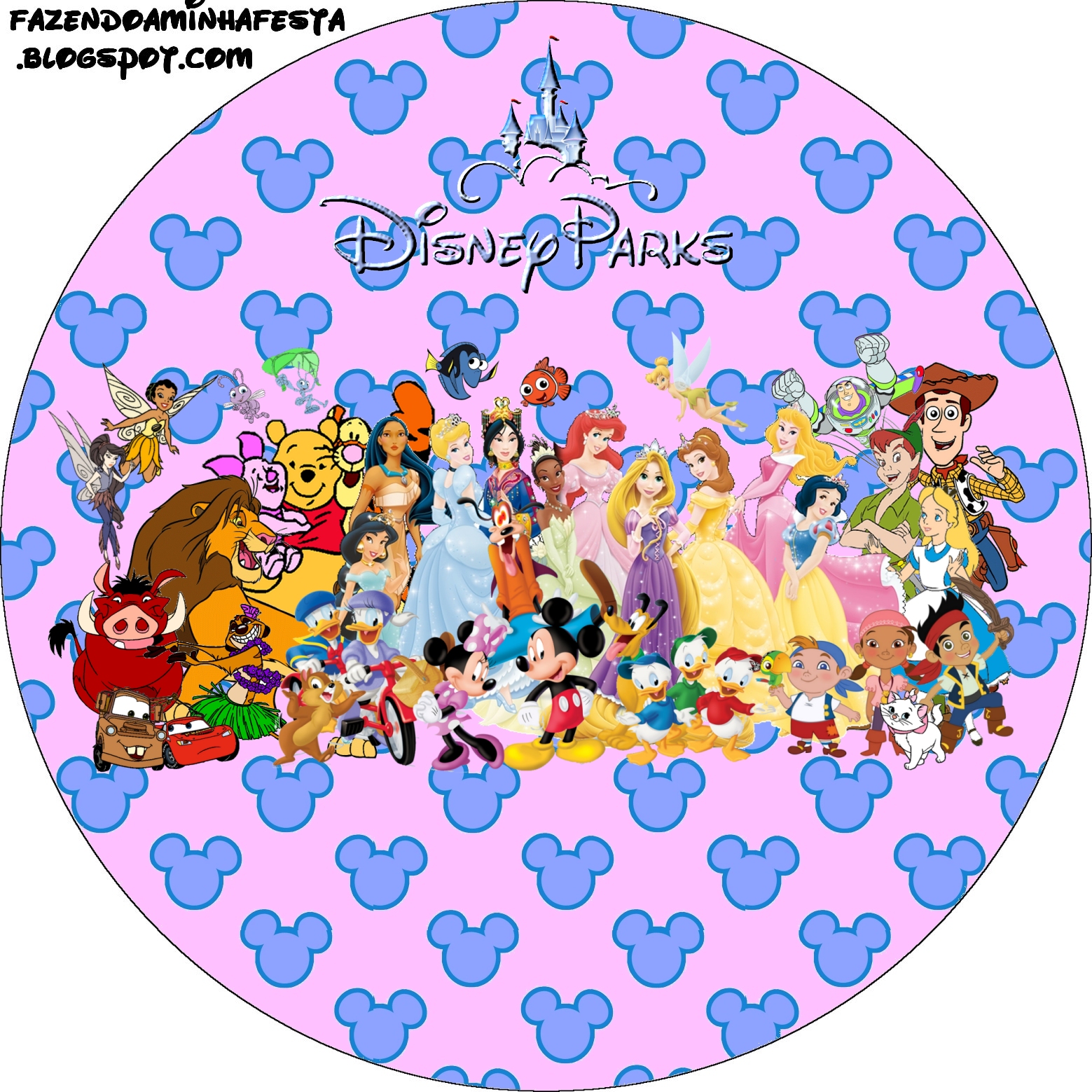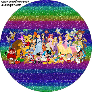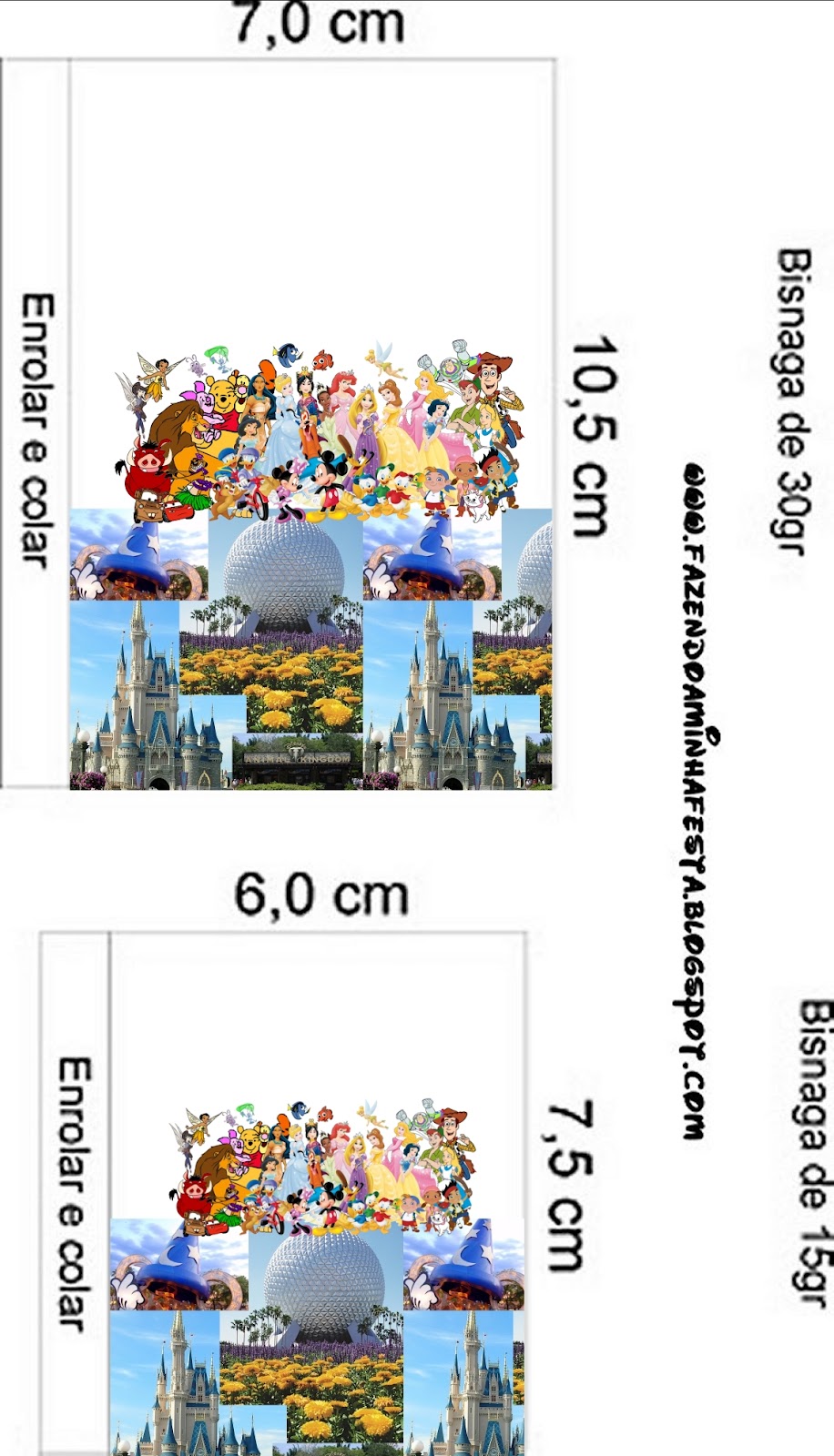 Rótulos para: Latinha,Gelatina,Tampinhas,Adesivos,Marmita Redonda e Toppers Cupcakes Walt Disney World com Personagens: