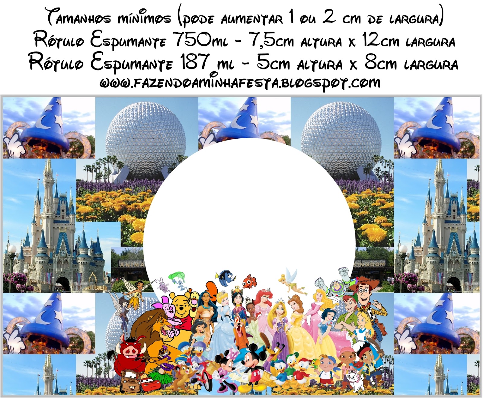 Rótulo Champagne,Espumante e Vinho Walt Disney World com Personagens: